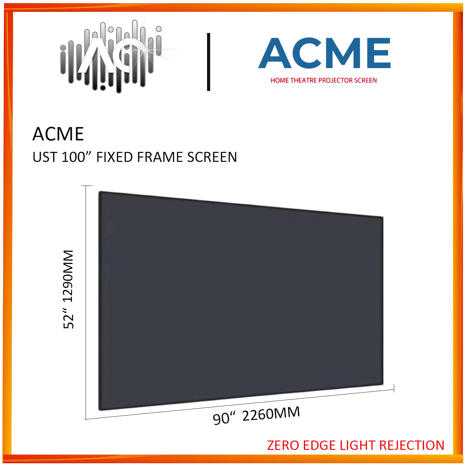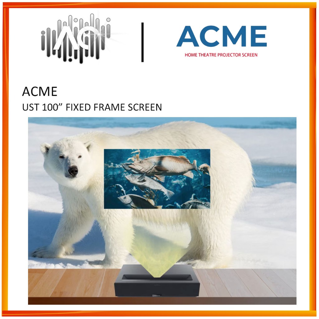 ACME UST-100'' (16:9) Fixed Frame Screen 4K Ultra Short Throw -Zero Light Rejection Professional Projector Screen