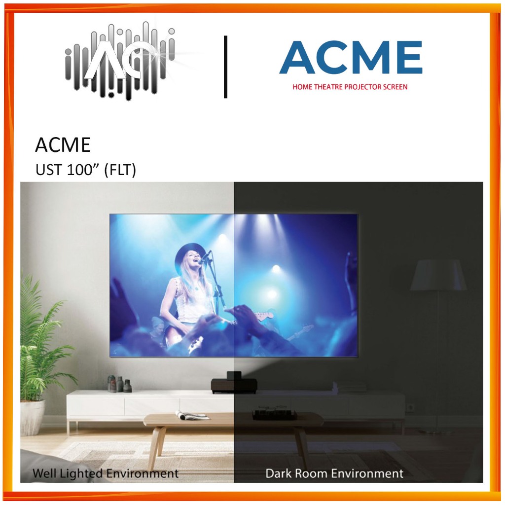 ACME UST-100" FLT Fixed Frame Screen (16:9) 4K Ultra Short Throw -Zero Edge Light Rejection-Projector Screen