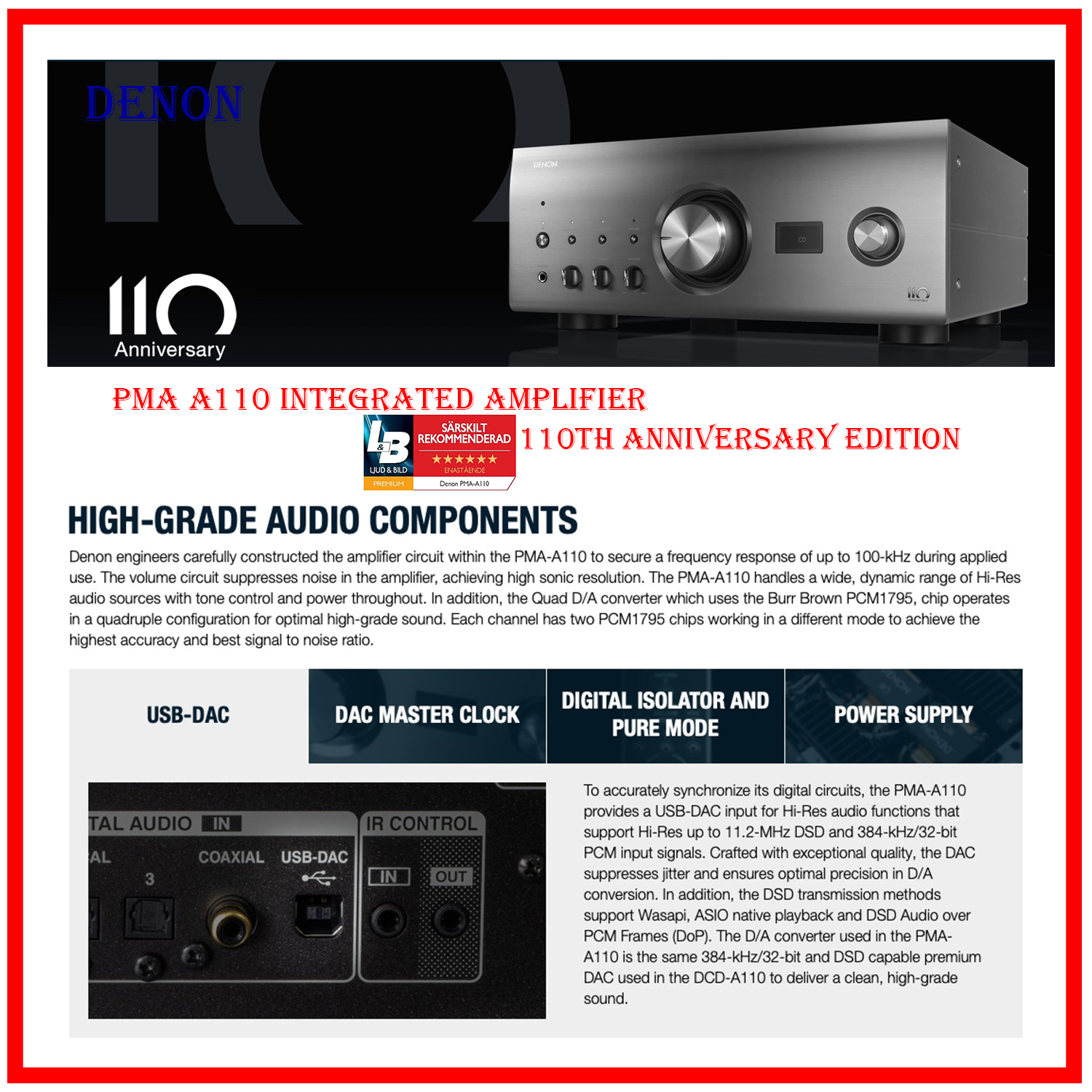 - To be fair, this type of output stage is not unique to the PM-A110, but is also found in Denon’s other integrated hi-fi amplifiers. In this case, however, it is all done with hysterical attention to component quality and in a version with fewer stages, that is copied from the very expensive PMA-SX1 amplifier.