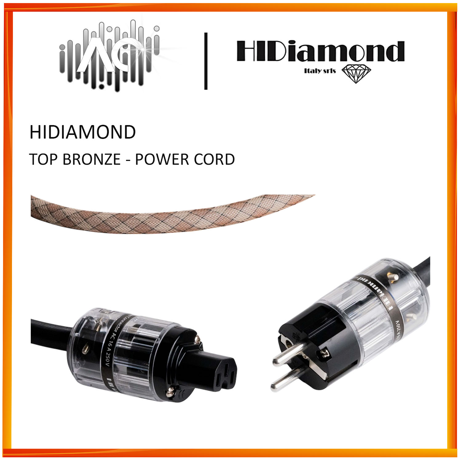 XLPE insulator (XLPE is 100 times better than normal Teflon!). This lowers the threshold of the "spike" coming out and consequently the width of the barrier of the musical signal, guaranteeing greater linearity and lower amplitude of the basic sinusoid to the full advantage of the naturalness of the emission of the musical signal. It can be requested with a Schuko plug (standard) or with a US or UK socket. All silver plated.