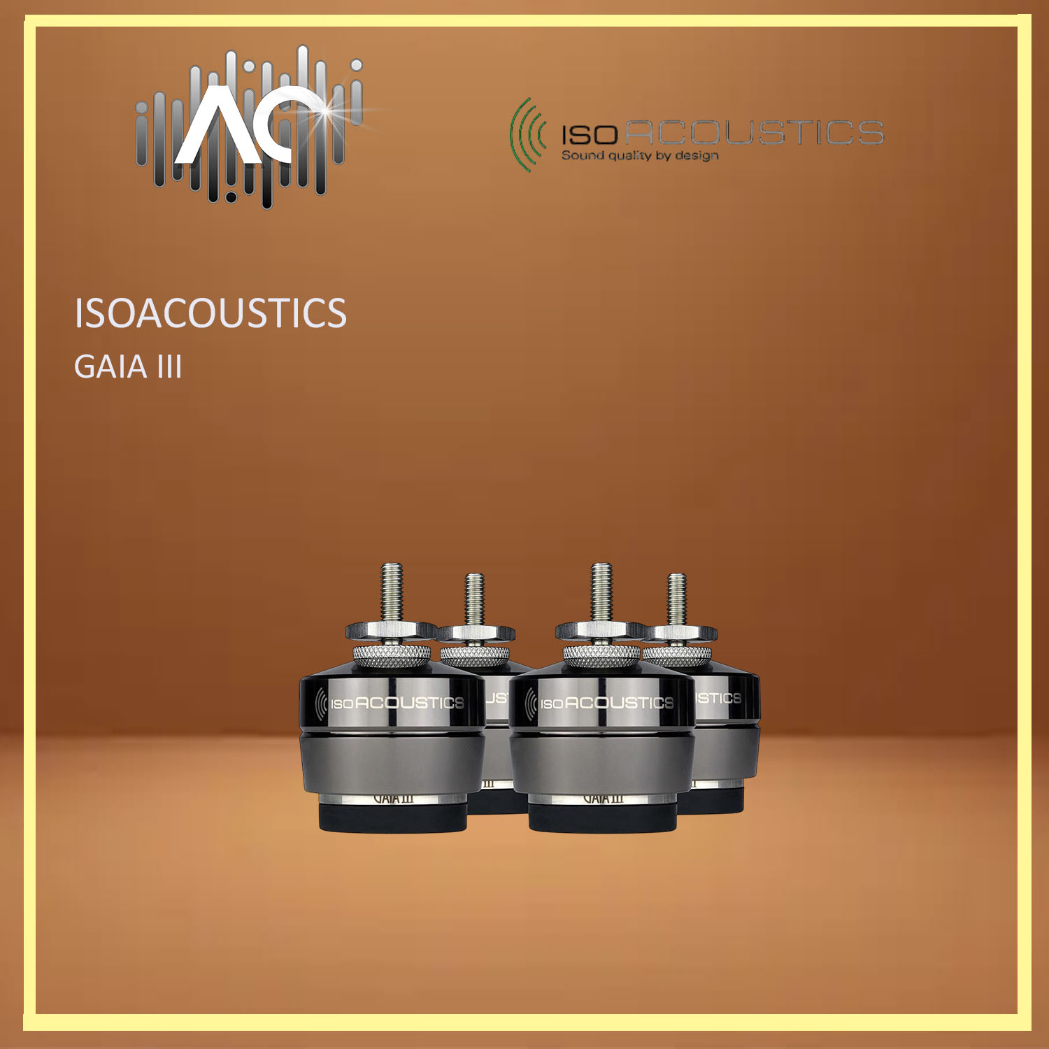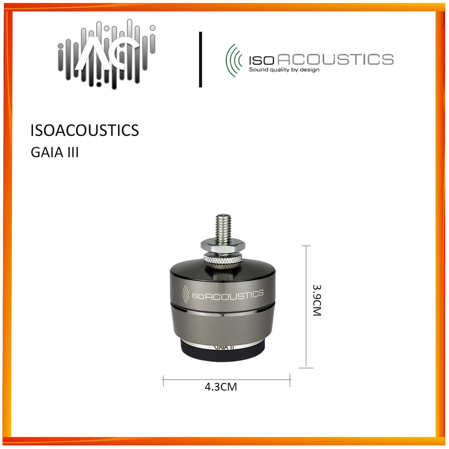 GAIA isolators come with thread adaptors for the 3 most common thread sizes which fit the majority of speakers. Alternative thread sizes are available upon request through IsoAcoustics distributors.