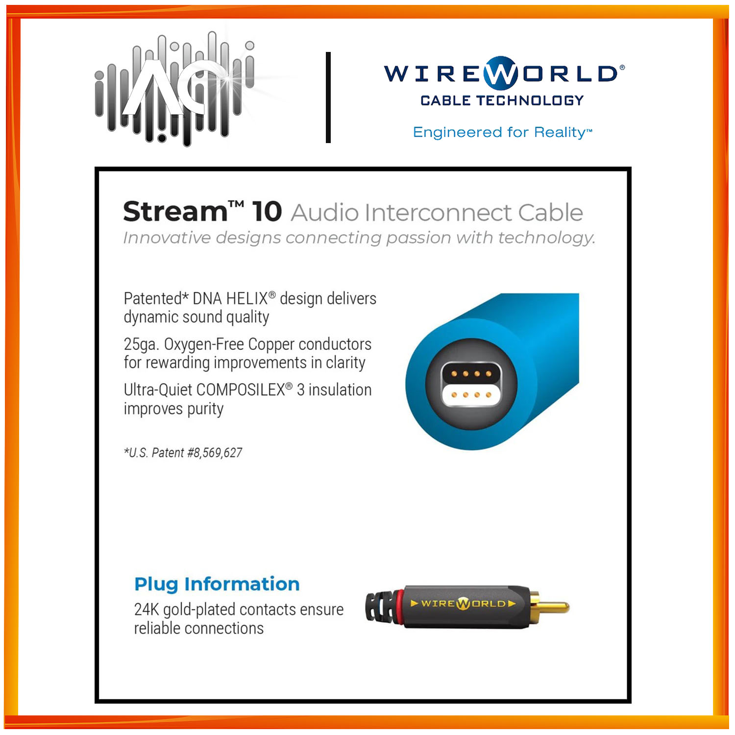 Utilizing Wireworld's patented DNA HELIX conductor geometry, this 25 AWG wire offers exceptional flexibility and superior performance for both consumer and professional audio systems. Its 100% shielding and proprietary COMPOSILEX 5 insulation work together to enhance fidelity. The design of this RCA cable underwent rigorous testing, comparing prototype cables with virtually loss-free direct connections between components to ensure optimal sound quality.